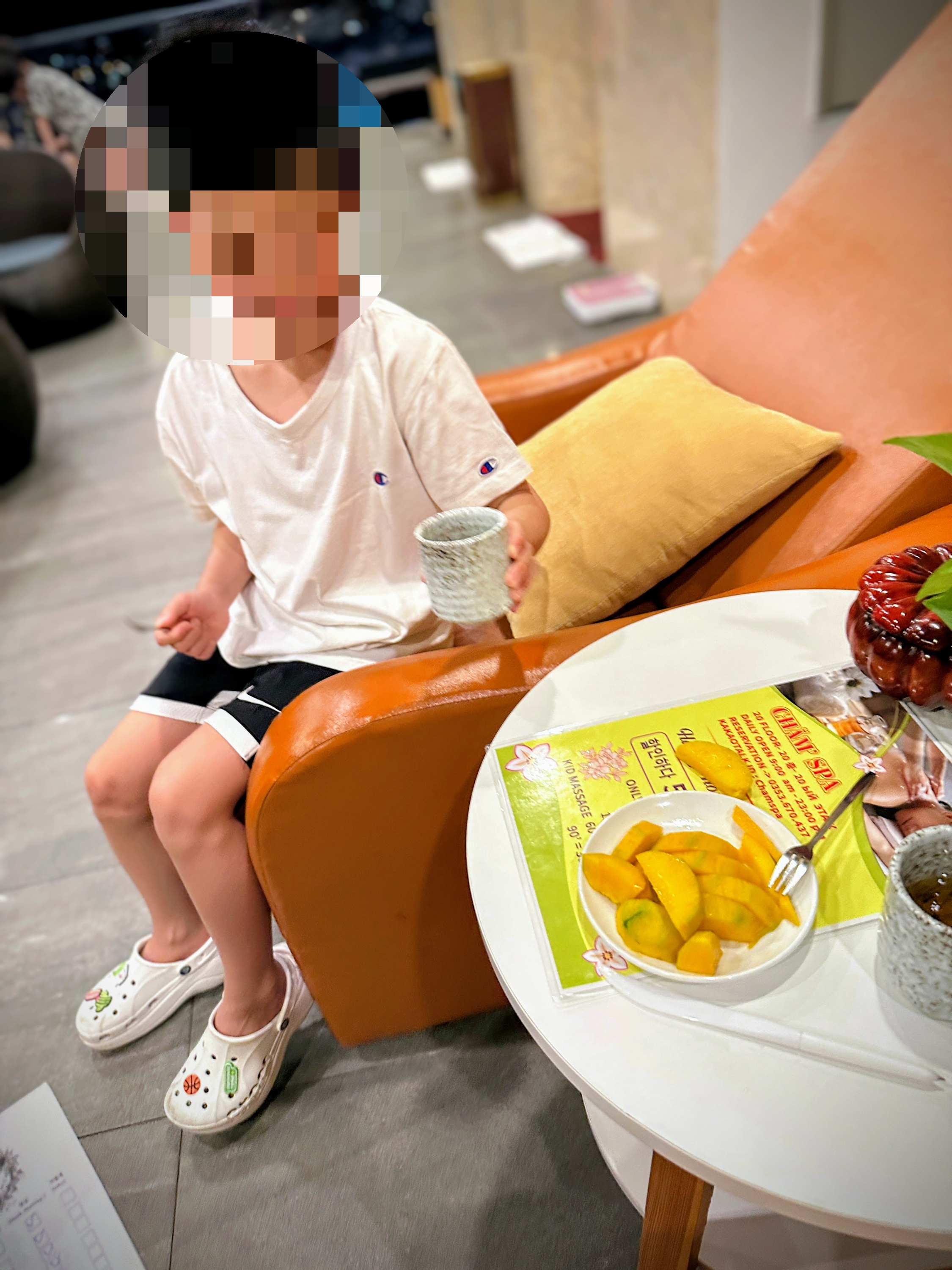 예약은 프런트 ‘0’ 전화해서 했어요. 20층인가 스파 직원분은 영어로 소통이 어려웠고, 호텔 프런트에 전화해서 어른 1, 아이 1 60분 마사지 가능한 시간을 물어봤고 저녁 7시쯤 받기를 원했으나 자리가 없어서 9시에 가서 받았어요. 가격 대비 꽤 잘 받았다고 생각하고, 받다가 잠들어서 기절해 있다가 깨어서 돌아왔습니다. 공항가기 전에 받고 가니 좋았어요 :)