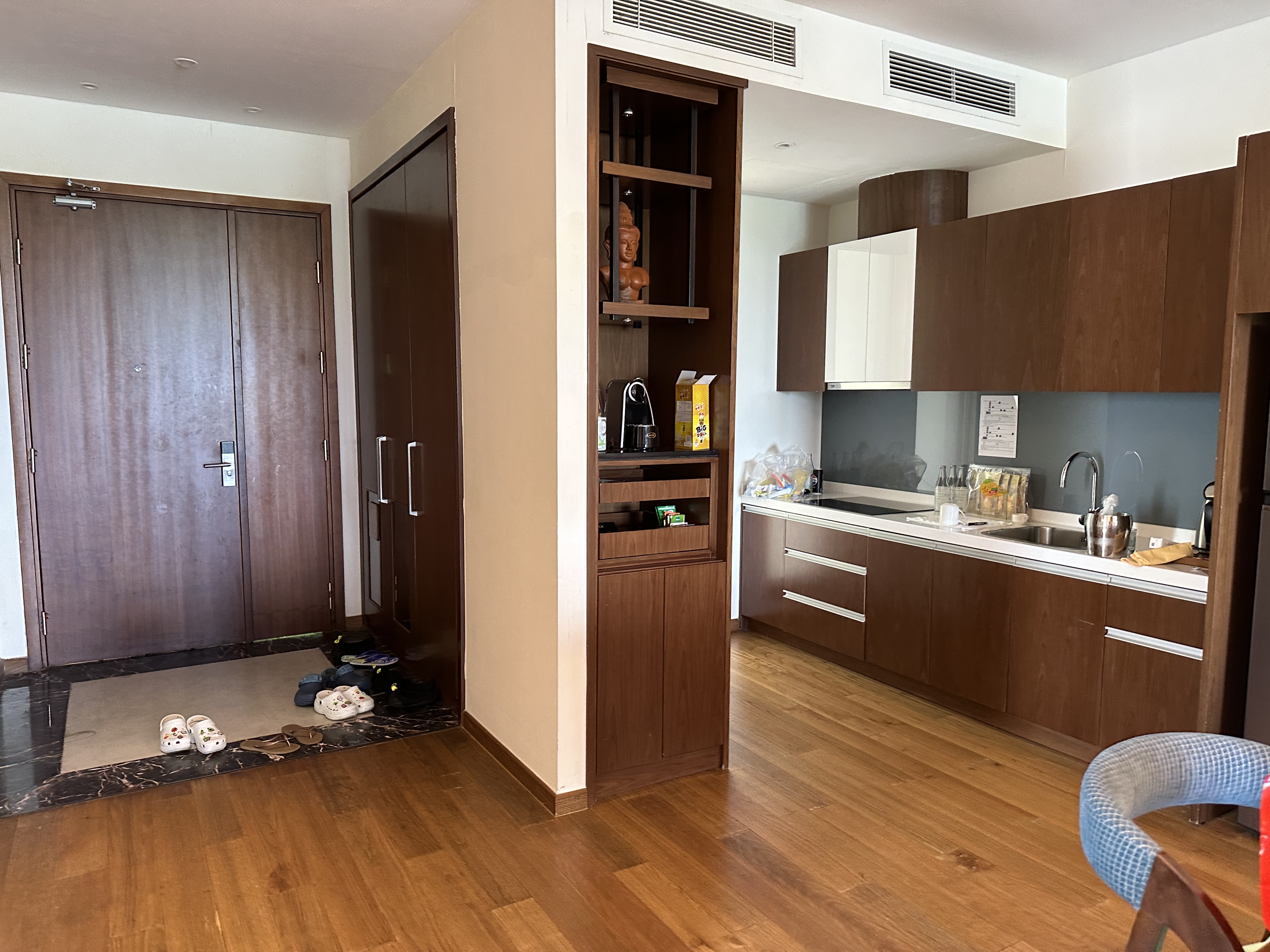 하지만 운이 좋아서 체크인할 때 예약이 호텔과 빌라 2개 있고, 이어서 투숙하는데 스무스 하게 해줄 수 있냐고 물어봤더니, 운좋게 풀빌라 4박으로 바꿔줬어요. 제대로 들은게 맞나 싶어서 호텔 프론트에서 재차 확인하고, 맞다고 해서 일단 궈궈했습니다. 와우~!