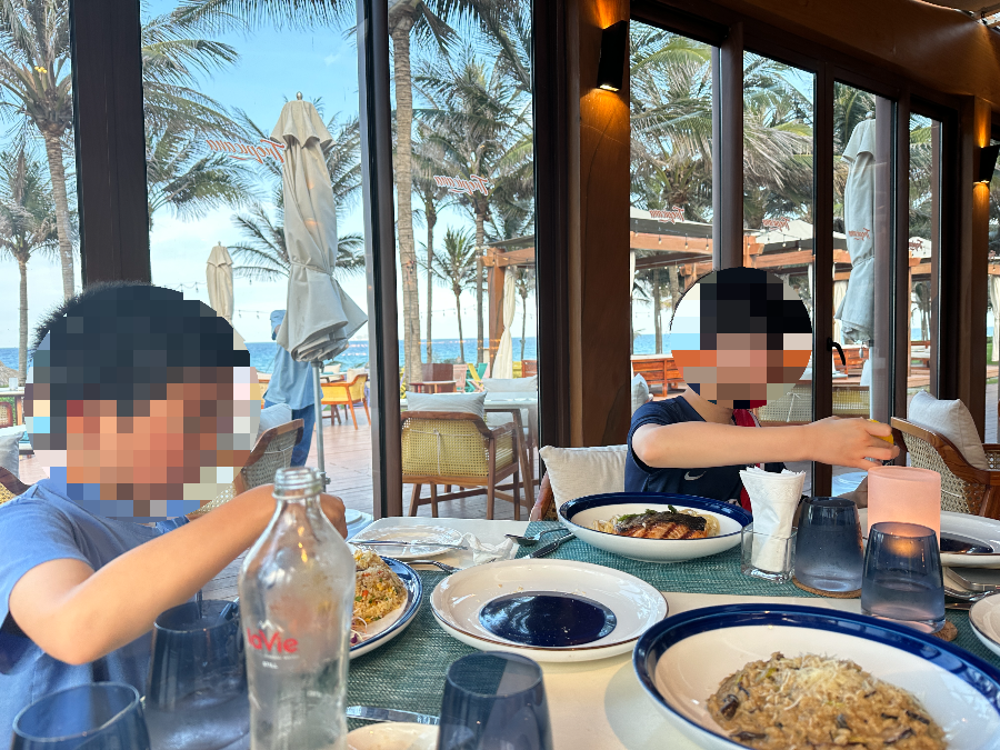 모벤픽 리조트 내에서 머물면서 조식 부페를 제외하고 뭐먹지 고민할 때 갔던 비치 클럽입니다. 해변 바로 앞에 있어서, 바다와 잔디 야자수를 보면서 밥을 먹을 수 있어서 좋아요. 배달K 앱으로 시켜 먹을 수도 있는 리조트이지만 좋은 부대시설들도 있으니 즐기는 것이 좋지요.